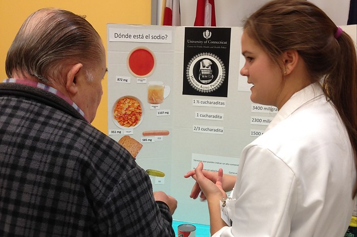 UConn medical, dental, nursing, and pharmacy students, along with Quinnipiac University physician assistant students, staff the health fairs, offered free blood pressure and blood glucose screenings and providing health education materials covering topics such as oral health, nutrition, medication interaction, heart health and diabetes prevention.